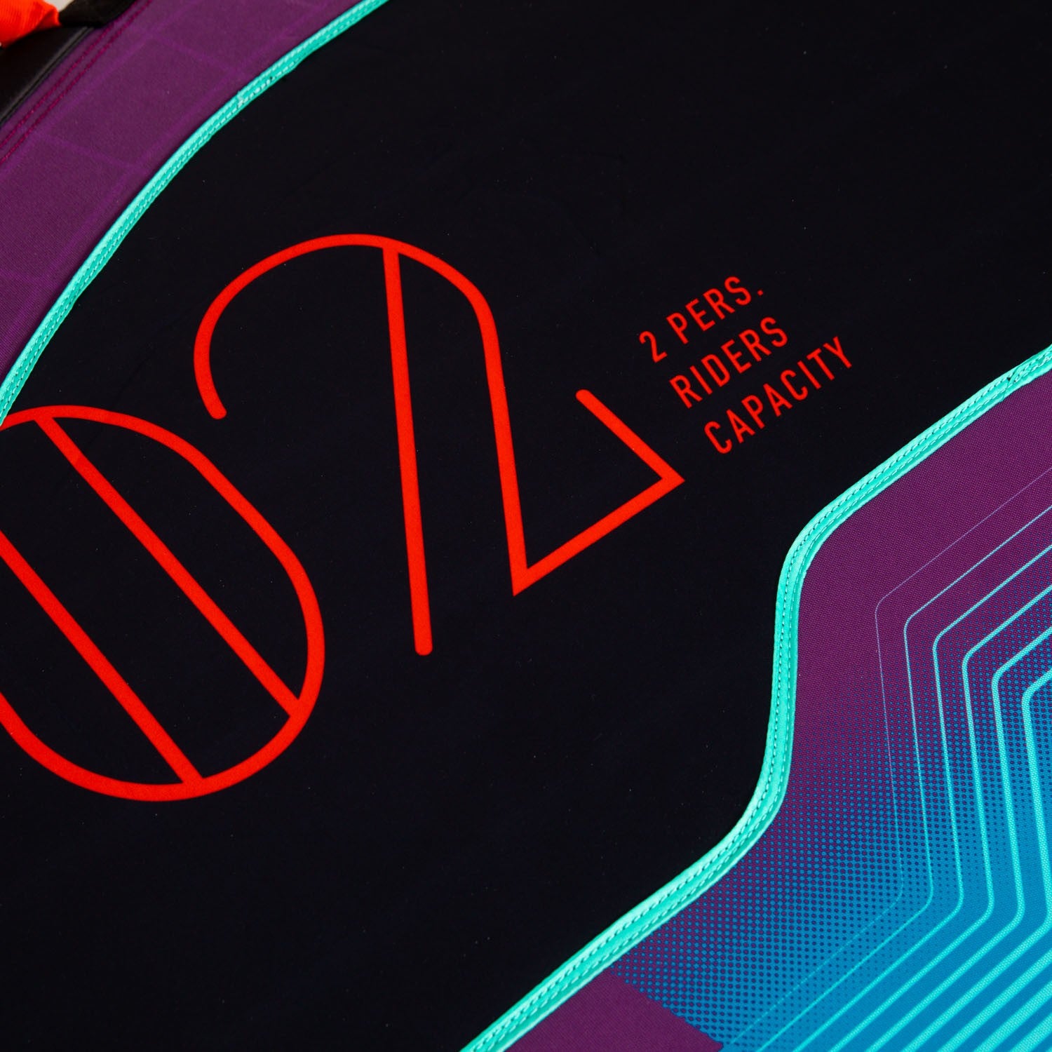 De Jobe Droplet heeft een capaciteit van 2 personen, maar 6 zachte en gripvaste handvatten om ervoor te zorgen dat je je stevig kunt vasthouden terwijl je over de golven hobbelt. Deze towable heeft een binnenkant van heavy duty 24G PVC en is volledig bedekt met sterk 420 denier nylon met een strak blauw patroon.
